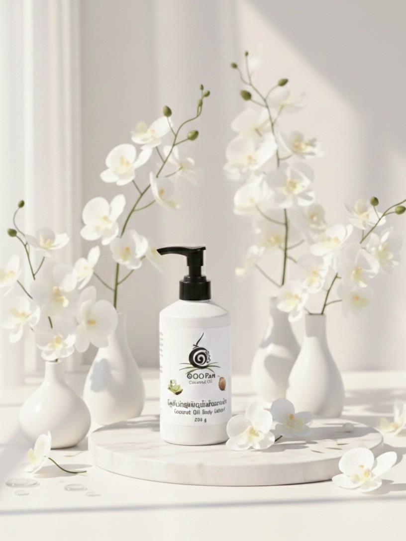 โลชั่นมะพร้าว ช่วยบำรุงผิวด้วยคุณค่าจากน้ำมันมะพร้าวธรรมชาติที่ช่วยเติมความชุ่มชื้นให้ผิวอย่างล้ำลึก ลดความแห้งกร้านและความหยาบกระด้าง ทำให้ผิวดูเนียนนุ่ม สุขภาพดี อีกทั้งยังช่วยให้ผิวรู้สึกผ่อนคลายด้วยกลิ่นหอมละมุนของมะพร้าว เหมาะสำหรับการบำรุงผิวในทุกวัน ประโยชน์โลชั่นมะพร้าว การใช้โลชั่นมะพร้าวเป็นประจำช่วยให้ผิวชุ่มชื้นยาวนาน ลดปัญหาผิวแห้งลอก และช่วยให้ผิวดูเรียบเนียนน่าสัมผัส ผิวมีความกระจ่างใสและดูสุขภาพดีมากขึ้น อีกทั้งยังช่วยเพิ่มความมั่นใจด้วยกลิ่นหอมอ่อนๆ ที่ติดผิว เหมาะสำหรับทุกสภาพผิว โดยเฉพาะผู้ที่มีผิวแห้งหรือผิวขาดน้ำ วิธีใช้ ข้อควรระวัง • หลีกเลี่ยงการทาบริเวณผิวที่มีแผลเปิด• หากเกิดอาการแพ้หรือระคายเคือง ควรหยุดใช้ทันที• เก็บในที่แห้งและหลีกเลี่ยงแสงแดดจัด• เก็บให้พ้นมือเด็ก• ใช้ภายนอกเท่านั้น ห้ามรับประทาน