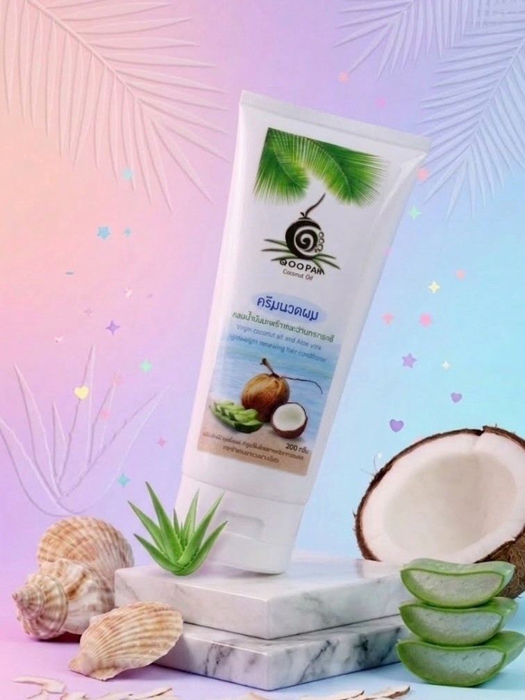 ครีมนวดผมน้ำมันมะพร้าวเป็นผลิตภัณฑ์บำรุงเส้นผมที่มีส่วนผสมของน้ำมันมะพร้าวธรรมชาติ ช่วยเพิ่มความชุ่มชื้นให้เส้นผม ฟื้นฟูผมแห้งเสียให้กลับมานุ่มลื่น เงางาม ลดปัญหาผมชี้ฟู และช่วยให้เส้นผมจัดทรงง่าย เหมาะสำหรับการดูแลเส้นผมในชีวิตประจำวัน