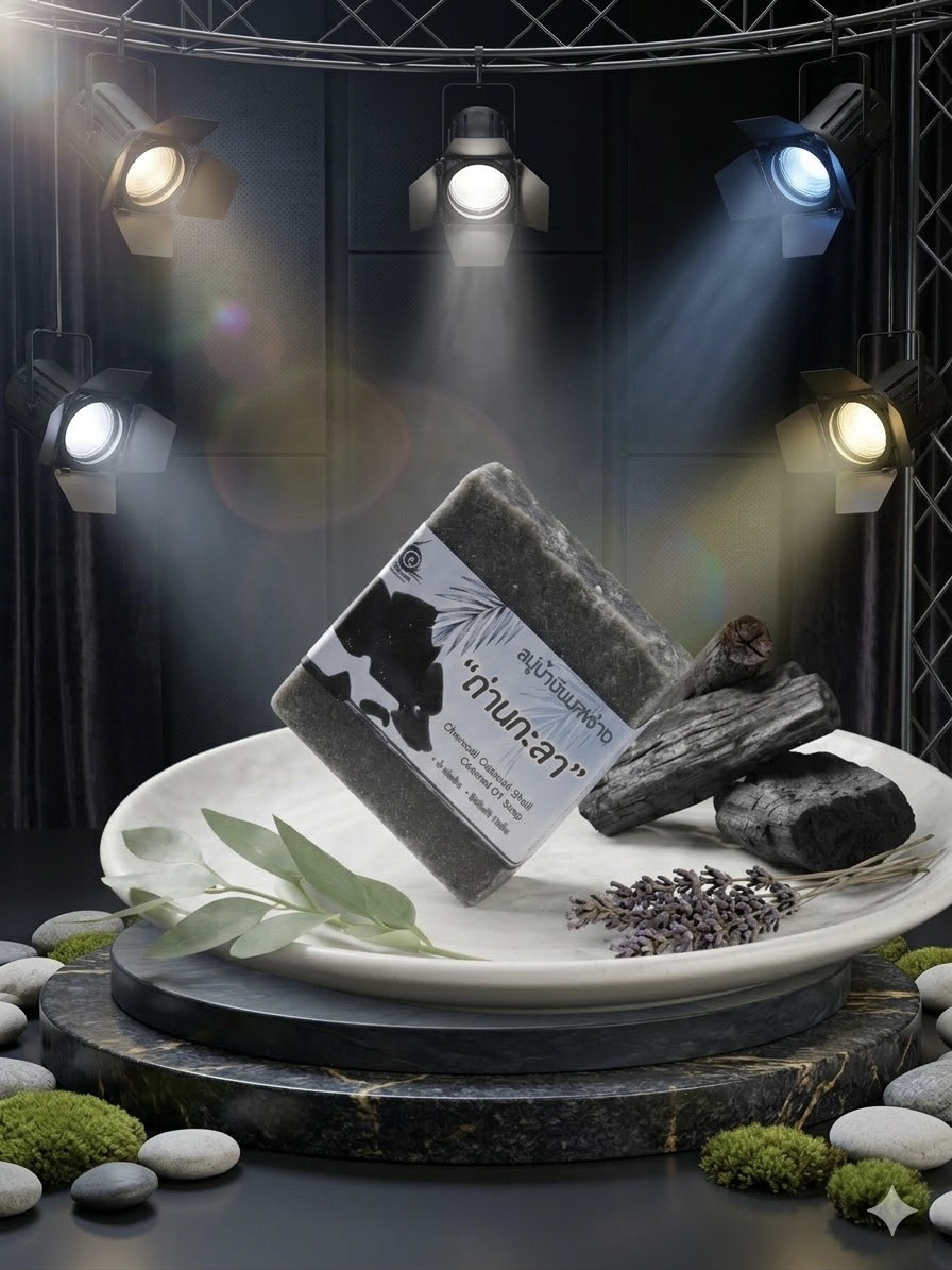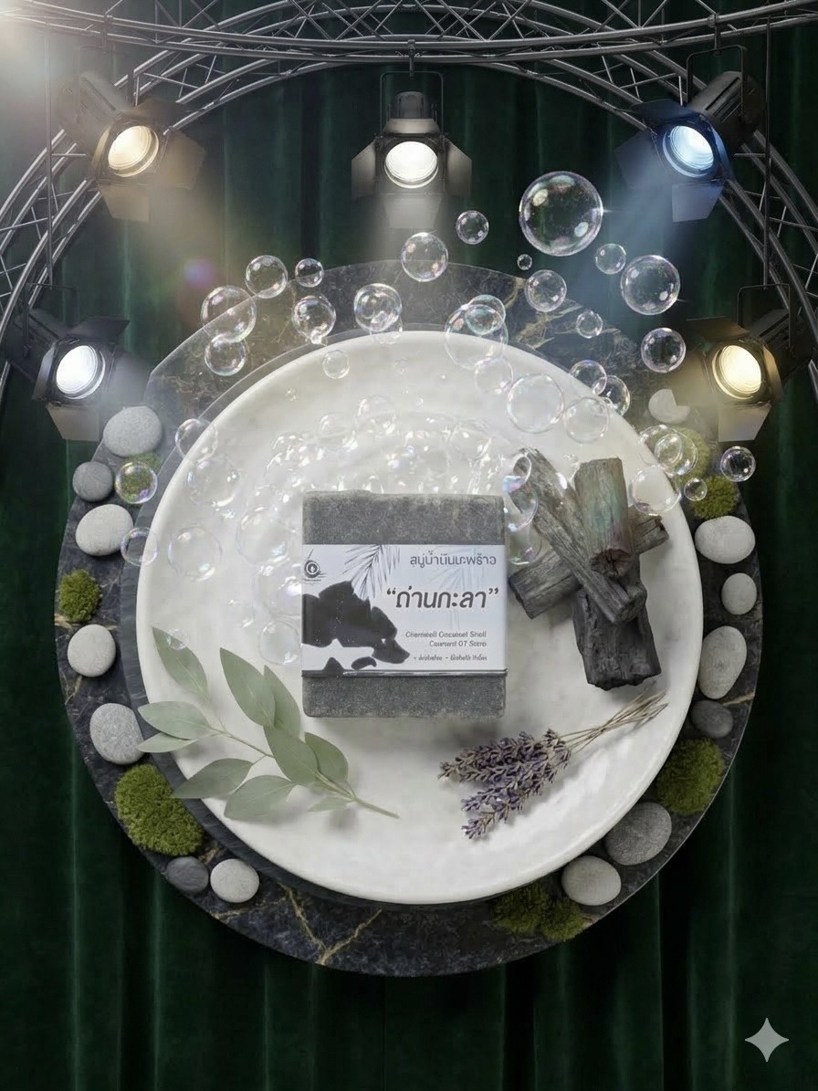 สบู่ถ่านกะลา ผลิตจากถ่านกะลามะพร้าวที่มีคุณสมบัติช่วยดูดซับสิ่งสกปรกและความมันบนผิว ทำความสะอาดผิวได้อย่างล้ำลึก ช่วยให้ผิวสะอาด สดชื่น ลดการอุดตันของรูขุมขน และช่วยให้ผิวดูเรียบเนียน สุขภาพดี