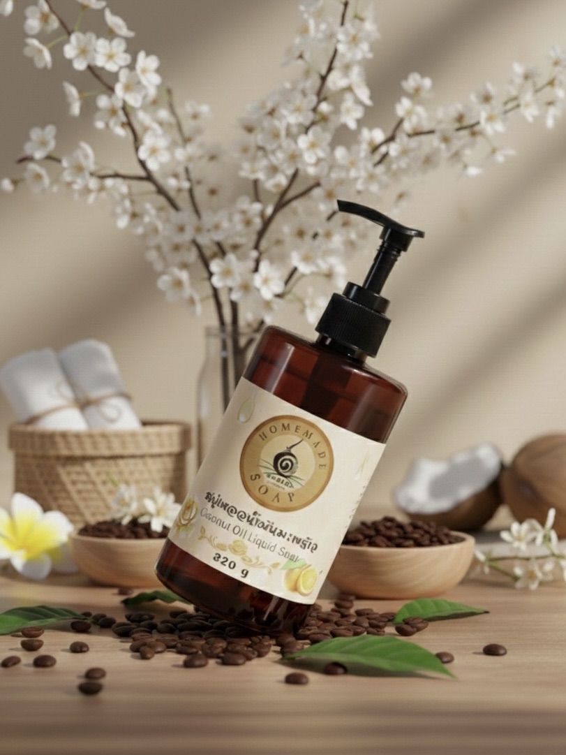 สบู่เหลวของเราผลิตจาก น้ำมันมะพร้าวแท้ 100% ซึ่งอุดมด้วย กรดลอริก, วิตามินอี, และสารต้านอนุมูลอิสระ ที่ช่วยบำรุงและปกป้องผิว นอกจากนี้ยังมี สารสกัดสมุนไพรธรรมชาติ เช่น ว่านหางจระเข้ ข้าวโอ๊ต หรือคาโมมายล์ ที่ช่วยปลอบประโลมผิว ทำให้ทุกครั้งที่อาบน้ำ ผิวสะอาดและได้รับการบำรุงไปพร้อมกัน